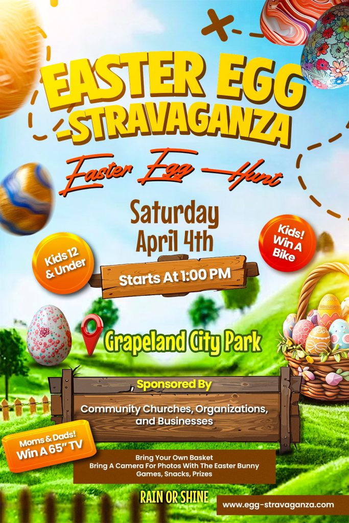 We are already looking forward to the 12th Annual Grapeland Egg-Stravaganza in 2027, scheduled for the Saturday before Easter. We look forward to gathering again and continuing this tradition in our community.